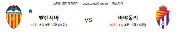 3월9일 02:30 발렌시아 VS 레알바야돌리드